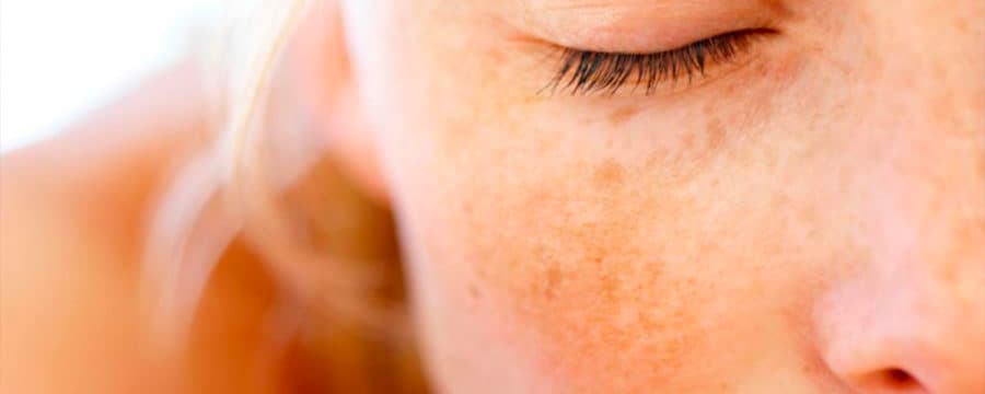 • Melasma: di colore grigio- marrone. È tipico del fototipo scuro, ma può comparire anche su pelli chiare a causa, ad esempio, dell’utilizzo della pillola o di antibiotici, oppure per alterazioni ormonali. Anche ceretta, creme profumate, oli essenziali agrumati o profumi applicati prima di esporsi al sole possono indurne la formazione. Questo tipo di macchie compaiono soprattutto sulle zone più esposte come: viso, decolleté, mani e gambe.